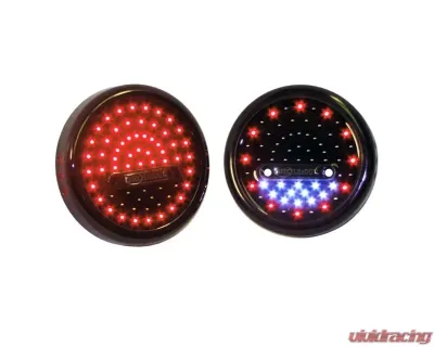 Jeep TJ LED tail lights, Round, Red/White. LiteDOTs LED taillights are designed to be a direct fit on 1987-2006 Wranglers, these can be adapted to nearly any configuration with a flat mounting surface.