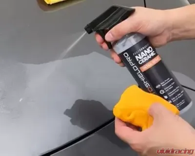 MotoShield Pro Performance Nano Ceramic Detail Spray is a multi-exterior purpose detailing spray with double the amount of SiO2 technology compared to our traditional formula. This can be used on any surface for vehicles, RV's, motorbikes, and boats. It's ceramic coating can help repel water, dirt, and make your car cleaner for longer. Don't ever wax again. Easily apply a Nano Ceramic Detail Spray instead. 1 bottle can fully coat an entire car 2 times.