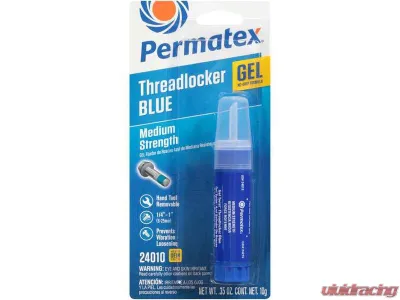Permatex?s Medium-Strength Threadlocker Blue is ideal for all nut and bolt applications 1/4? to 3/4? (6mm to 20mm). Threadlocker Blue eliminates need for stocking expensive lock nuts and lock washers and locks and seals while preventing parts loosening due to vibration. Protects threads from corrosion. Threadlocker BLUE is easily removable with hand tools for easy disassembly. The Gel formula provides ?liquid-reliability? without drips, globs, mess or waste and is available in convenient dispensing systems: choose GEL TWIST pin-point applicator or the GEL SQUEEZE applicator. (Mil-S-46163A, Type II, Grade N).