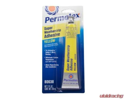 Permatex Yellow Super Weatherstrip Adhesive is a superior adhesive ideal for many applications including rubber, metal, auto or van carpeting, fabric-backed vinyl upholstery and automotive gaskets.