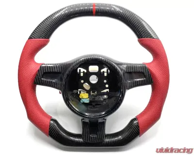 Upgrade the interior of your Porsche 987.2, 997.2, 981, 991, 958, 970 with PDK paddles with the new Vivid Racing Steering Wheel. Vivid Racing has done steering wheels like this for cars such as BMW, Mercedes, Ferrari, and more! This steering wheel upgrade brings in proper ergonomics and luxury feeling that the OEM steering wheel simply does not have. You spend hours behind the wheel driving your car, might as well make driving feel good! The new steering wheel is based off of OEM steering wheel cores. So no matter the year, the buttons you have, we can make a wheel for you. Vivid Racing's factory alters the shape while keeping the original inner ring for safety. The steering wheel features beefier hand grips at 9 and 3 positions giving you proper driving ergonomics. Because these are made off a factory steering wheel core, you retain your original buttons and trim along with reusing your airbag. This is not a simple cover but a re-engineered steering wheel!