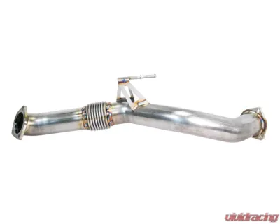 Constructed from 16 gauge mandrel bent 3" tubing, this front pipe is built tough. The CNC machined flanges and high-quality reinforced flex-section mean you're getting something that can handle the heat and stress of high-performance driving. All the components are made from 304 stainless steel, and they’re fully back-purged right here on site, so they can withstand those high exhaust gas temperatures without breaking a sweat.