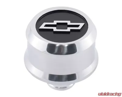 No more stamped steel breather caps for aluminum valve covers! Complete your engine dress-up look with a breather cap that actually matches your look! These new Slant-Edge aluminum push-in breather caps are available in five different finishes, and with just about every Bowtie emblem configuration imaginable: raised and milled, recessed with inlaid paint, the unique recessed/raised blackfield, and even no emblem at all. The vivid 3D Bowtie emblem gives this 2.5 inch diameter breather cap a bold clean look that