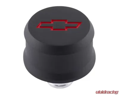 Pro Form Slant-Edge Aluminum Push-In Air Breather Cap w/ Recessed Red Bowtie Emblem Black Crinkle Finish