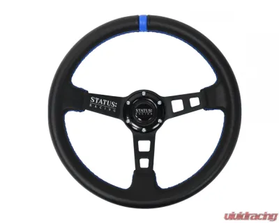 The steering wheel has 6 point bolt pattern, specifically chosen because it fits the majority of aftermarket hubs and quick releases. Includes a center Horn Button with Status emblem.