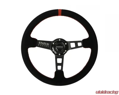 The steering wheel has 6 point bolt pattern, specifically chosen because it fits the majority of aftermarket hubs and quick releases. Includes a center Horn Button with Status emblem.
