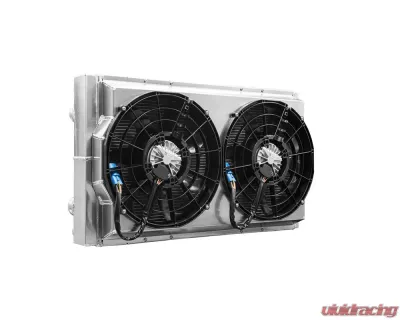 Drift Radiator Module (Universal Rear Mount, Closed, Side Ports, Fittings Opposite Tank 31.5"x18.5") -Double Pass, Dual 14" Brushless SPAL Fans