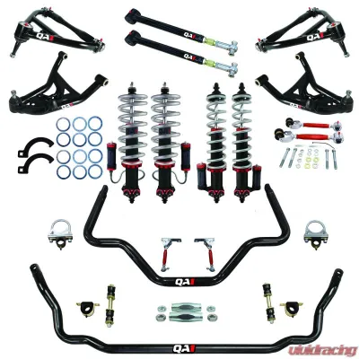 This kit is compatible with factory housings or Quick Performance 9" rear axles and is classified as a Level 3 Big Wheel Kit, specifically designed for 71-76 GM B-Body vehicles. You'll enjoy the benefits of MOD Series shocks on all four corners, optimizing performance for both street cruising and drag racing.
