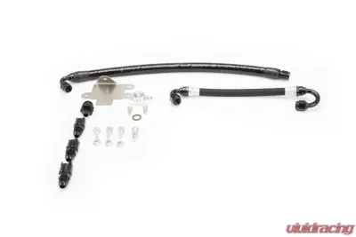 The install kit includes the mounting bracket, all plumbing, with high quality Redhorse Performance ethanol compatible hose, and crimp hose ends.