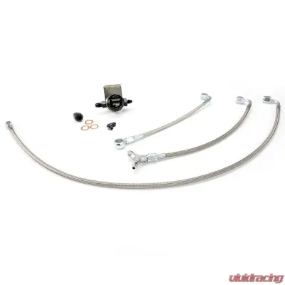 This kit picks up oil from the factory oil distribution block, caps the other turbo oil feed no longer being used on the block, feeds both turbos, and returns excess oil into the factory oil fill neck. All parts are included, but the factory fill neck will need to be tapped for the return fitting.
