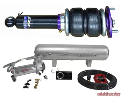 D2 Racing Air Struts allow for adjustment through both the lower mount and inflatable sleeve or double bellow style air bellow which allows for ultimate range of ride height adjustment. Each air shock features a 36-way damping adjustable design for fine tuning of ride quality and responsiveness.