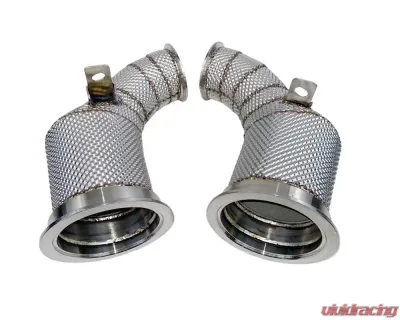 Catted Downpipes for Porsche Panamera 4S, 4E 971.1 / Base, 4, 4SE 971.2 w/ 2.9l V6 Twin Turbo (971) 2016+ with heat shield material. These downpipes replace the factory primary catalytic converters with 200 cell sport catalytic converters. Downpipes are have high temperature coverings to reduce heat emitted engine compartment. Designed for track use.