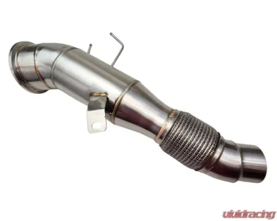This is a direct bolt-on replacement that retains factory mounting points and sensor locations for straightforward installation. Designed for off-road or track use, this race downpipe will produce a more aggressive exhaust note and typically requires ECU tuning to prevent a check engine light.