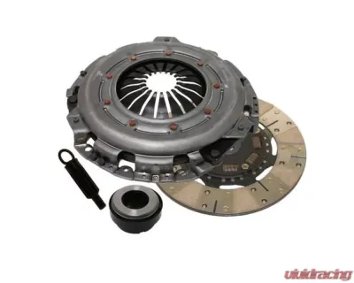 As power levels move up to and beyond 500 horsepower. RAM POWERGRIP meets the challenge with a combination of organic and metallic disc friction surfaces that effectively increase the clutch capacity to the 550 horsepower level. The 8-spring hub is equipped with RAM POLYCOIL damper springs encapsulated in polyurethane. This spring can handle three times the shock load of just the coil spring, and is standard in all RAM competition discs. The RAM Competition pressure plate in this kit provides 30% more clamp pressure than stock, and meets SFI specifications. At this high level of performance RAM POWERGRIP provides surprisingly good driving characteristics with smooth, comfortable driver control. Sets include pressure plate, disc, release bearing, and alignment tool unless otherwise noted.