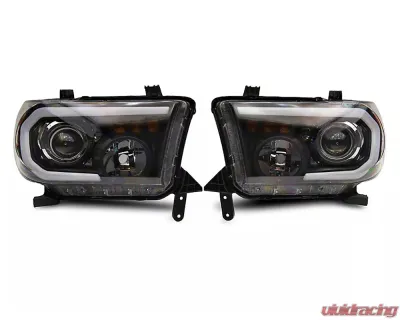 Add an updated contemporary appearance to your 2007-2013 Toyota Tundra, all while improving your nighttime visibility with a pair of Axial Projector Headlights that feature black housings and clear lenses. With an impressive LED Daytime Running Light (DRL) design, that double as sequential turn signals, these Axial Headlights will give your Tundra a whole new look.Utilizing a projector lens design, these Headlights will light up the road ahead with a bright focused beam for better nighttime visibility. The white Daytime Running Light (DRL) Bar accents not only look great, but will also ensure that you are visible to distracted drivers day or night.Manufactured from OEM grade materials, these Projector Headlights are assembled to precise standards for long-lasting quality. These Projector Headlights feature durable, black ABS plastic housings with crystal clear polycarbonate lenses and modern LED lighting. Each housing is weather-sealed to prevent dirt and moisture from harming the state of the art electronics found inside.These Headlights were designed to be a direct plug and play replacement for your vehicle's original factory housings. The DRL light bar portion of the headlight will require splicing into your running lights for operation. Please be sure to have your headlights properly aimed/aligned before driving at night.