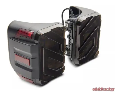 Add a futuristic new look to your 2020-2023 JT Gladiator with a pair of Smoked Raxiom Axial Series LED Tail Lights. Featuring high powered LEDs, these Tail Lights will make an impactful statement to the exterior appearance of your Gladiator. Whether your JT is your daily driver or your weekend toy, these Raxiom Axial Series LED Tail Lights will be sure to set your Jeep apart from all the rest.Manufactured from OEM grade materials, these Raxiom Axial Series LED Tail Lights are assembled to precise standards for long-lasting quality. Featuring durable black ABS plastic housings with smoked polycarbonate lenses, these Tail Lights employee super bright LEDs for use as brake, turn signal, running and reverse lights. Each housing is weather-sealed to prevent dirt and moisture from harming the state of the art electronics found inside.These Raxiom Axial Series LED Tail Lights were designed to be a direct plug and play replacement for your JT's original factory housings. There is no cutting or modifications required for a clean straight forward install. Installation can be completed in about an hour with just basic hand tools. Please note that you must transfer OEM mounting posts and screw clips over from your original factory tail lights.