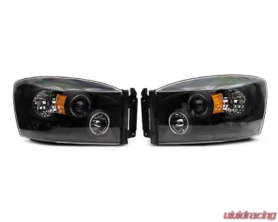 To easily make your 2006-2008 RAM 1500 stand out from the pack without breaking the bank, simply invest in a pair of Black Halo Projector Headlights. These impressive headlights boast a modern, ultra-stylish appearance that outshines the rest. A massive improvement over your worn out, clouded, or cracked stock headlights, this high-end option ensures optimal visibility so you can focus on the drive ahead.Featuring halo rings that guarantee high-intensity brilliance and projector lenses that focus and straighten the beam, these Black Halo Projector Headlights are as effective as they come. These lights boast an H3 low beam, an H1 high beam, and high-powered LED bulbs for an unmistakable shine while the clear lens and amber reflectors offer the tint you need.In order to guarantee long-term durability, these Halo Projector Headlights are crafted from impact-resistant housings. Precision-engineered to OEM specifications and DOT requirements, these lights are unbeatably hardcore, allowing for superior strength in challenging conditions and on difficult adventures.Using basic mechanical skills, these headlights can be secured without a problem. The installation process simply takes about 1 hour.Features :