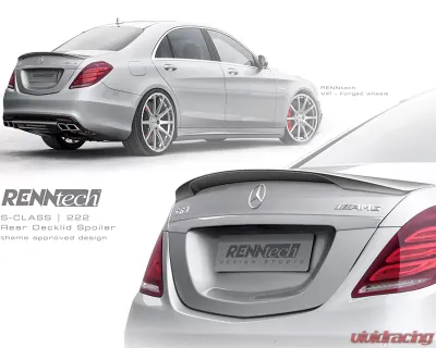 This highly integrated pre-preg carbon fiber spoiler compliments the sophisticated and refined S-Class exterior design language. The spoiler is coated inside and out with an all new acrylic UV protection system. A second layer of UV protectant clear coating is also applied using traditional spray methods, in order to create a smooth and high gloss finish. This spoiler is designed to fit any S-Class Sedan model from 2016 and up. No drilling or modifications to the trunk are necessary, installs with 3M double-sided automotive tape.