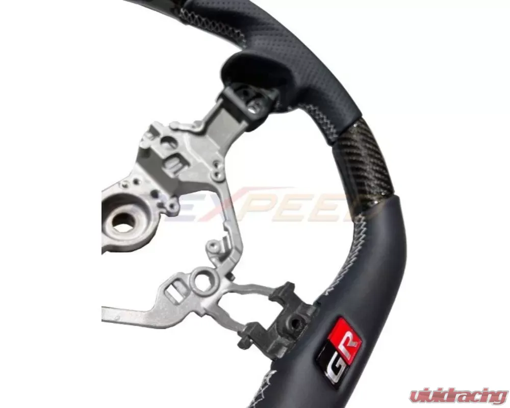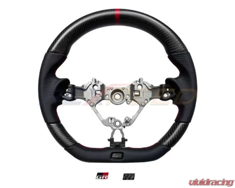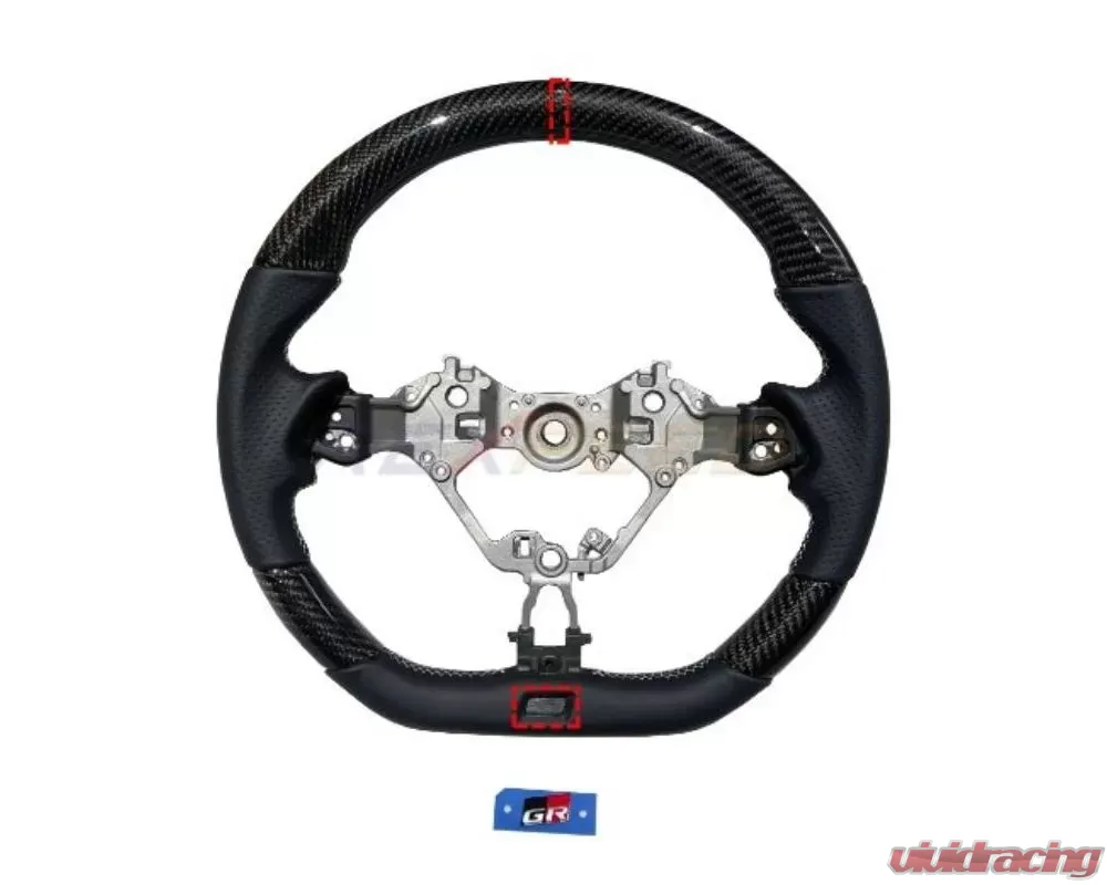 The bottom dotted line area is the position to attach the OEM GR badge or CF badge that come with the Steering Wheel.