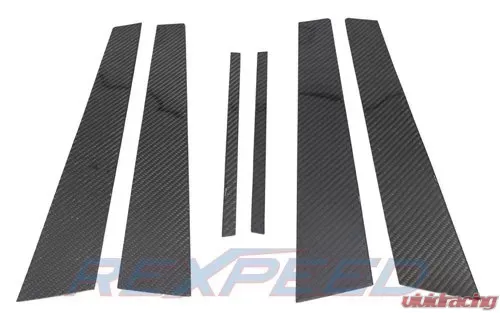 - Kit includes 6 CF pillar trims. There are 2 small extra strips for the rear windows that is not shown in the picture.