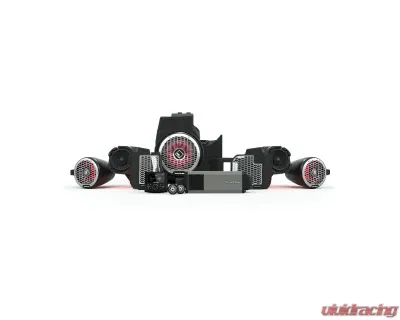 The Pro XP Stage 5 is a 1,500 watt audio system that takes entertainment to a new level with higher performance, louder output, and greater clarity. This complete waterproof solution provides the ability to take your UTV into any environment. The subwoofer enclosure vented to provide maximum bass performance offers the ability to seal the vent when submerging the vehicle. The plug-and-play design requires minimal cutting or drilling by using OEM mounting points and features an easy to set-up "Rockford Fosgate" preset to optimize performance. The Color Optix control allows RGB color adjustment of speakers and rear moto-cans in addition to a Rockford Fosgate illuminated logo for a finishing touch to the passenger dash.