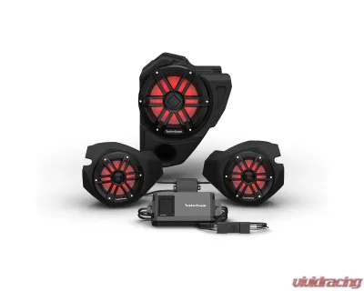 This Rockford Fosgate audio kit is Color Optix™ enabled by featuring our Color Optix™ controller to allow color adjustment of speakers and rear moto-cans. Audio system is 100% waterproof solution and provides ability to take your off-road vehicle into any environment. Amplifier employs Rockford Fosgate preset for easy set up allowing maximum performance without any tuning. System features a plug and play design, does not require any cutting or drilling of vehicle, step by step install videos available.