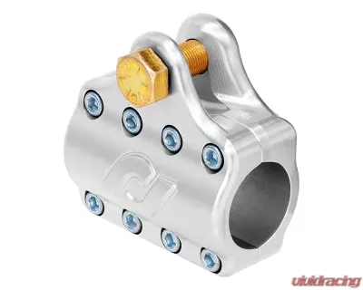 CNC machined 7075-T6 billet aluminum clamp features 2 mating halves for ease of installation. Common clamps on the market require you to remove and dismantle your tie rod to allow the clamp to be slid onto the tie rod tube. The 2 halves of the RockJock clamp simply install onto the tie rod in your vehicle as-is, and then the clamping bolts tighten it up!