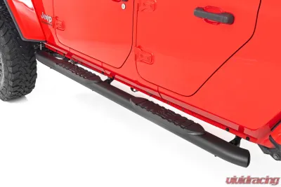 Upgrade your Jeep Gladiator with the Rough Country Oval Nerf Steps (Part Number: 21015), designed specifically for the 2020-2025 models. These nerf steps not only enhance the look of your vehicle but also provide practical functionality, making it easier to access your cab, especially in lifted setups.