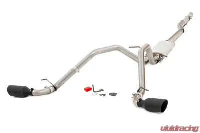 The Rough Country 96017 Dual Cat-Back Exhaust System is engineered specifically for 2011-2019 Chevrolet Silverado 1500 and 2011-2018 GMC Sierra models. This exhaust system is designed to enhance your truck's sound and performance, providing a robust and aggressive tone that resonates with power enthusiasts.