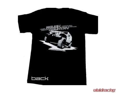 Introducing the Rough Country Short Sleeve T-Shirt in Black, part number 84028. This stylish and comfortable tee is perfect for those who want to showcase their love for adventure and rugged outdoor experiences. Made from 100% preshrunk cotton, it ensures a soft feel against your skin while keeping its shape wash after wash.
