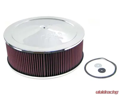 K&N Round Air Filter Assembly 14 Inch Red Cotton Gauze Chrome Top 5.125 In Neck Flange