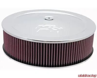 K&N Round Air Filter Assembly 14 Inch Red Cotton Gauze with Chrome Top, Custom Fit