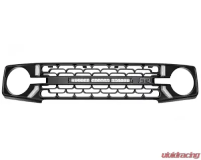 High-Quality ConstructionThe RTR Bronco Grille is designed and manufactured with consideration of OEM fitment. This grille is designed to be a direct replacement for your factory Ford grille, no modification required. The lightbar outfitted centerbar of the grille is modular and can be interchanged with other RTR centerbars. This grille features the RTR signature LED accent lights integrated directly into the grille as well as an 18-inch LED lightbar. LEDs are protected by UV hard coated lenses to prevent fading and to protect their color over time. The lightbar centerbar is not compatible with vehicles outfitted with 360° camera.