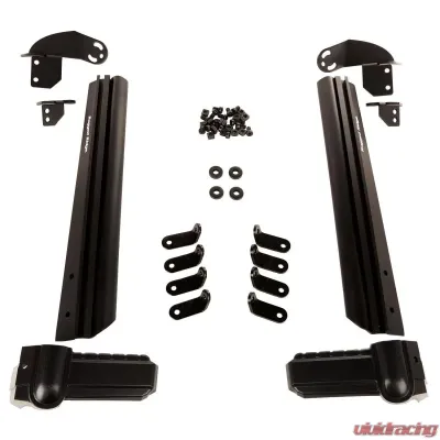 Rugged Ridge designed the new Elite Fast Track 50-inch LED Light Bar to be the most versatile component you?ll likely ever bolt to your JK, allowing you to adapt your a-pillar light configuration for your changing tastes or to better suit your needs. The Elite Fast Track LED Light Bars innovative design incorporates a revolutionary series of channels that run the length of the a-pillars an so that any variety or combination of lights, cameras, trail mirrors or accessories can be assembled and reconfigured in countless combinations. Constructed of high-quality 6061 T6 aluminum, the Elite Fast Track 50-inch LED Light Bar is extremely lightweight but impressively strong, able to withstand the grueling conditions Jeeps are prone to endure. The light bar works with most straight 50-inch LED light bars, including 15209.06, as well as Rigid brand 50-inch curved light bars. It incorporates an aerodynamic design and a durable black textured powder coat finish that gives great protection from the elements, while sturdy steel brackets and Grade 8 mounting hardware insure years of dependable service- all backed by our 5-year limited warranty. Patent Pending.