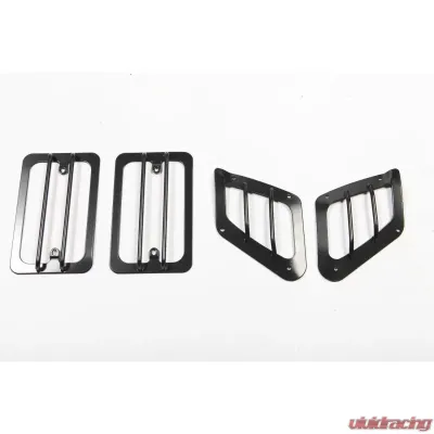 This four piece set of euro guards from Rugged Ridge are constructed of durable powder coated steel for a true attention to detail and are designed to last. The side marker light guards are a great complement to our front light Euro-guards. The turn signal light guards are designed to match our headlight Euro-guards and feature the same great style and construction.