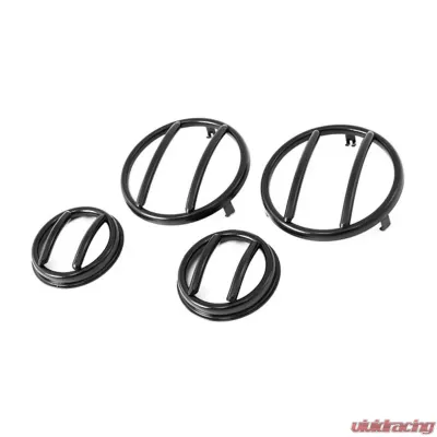 Protecting your turn signal and side marker lenses just got a whole lot easier! Now offering affordable protection and a rugged look, this four piece set of black euro guards are constructed of durable powder coated steel, designed to last and provide a true attention to detail, The side marker light guards are a great complement to our front light euro guards. The turn signal light guards are designed to match our headlight euro guards and feature the same great style and construction. No drilling required for installation.