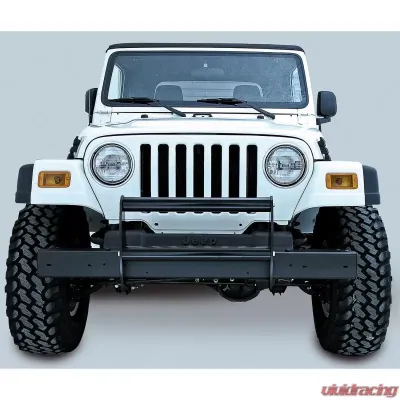 This brush guard from Rugged Ridge comes in a gloss black powder coated finish. Fits 97-06 Jeep Wrangler.