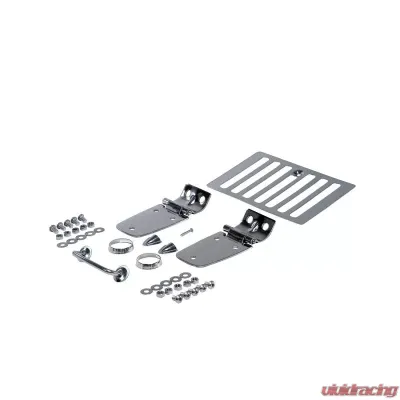This complete stainless steel hood kit from Rugged Ridge fits 98-06 Jeep Wrangler.
