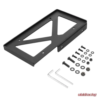 Rugged Ridge's Universal Rear Bumper License Plate Holder is a simple and concise solution to that age-old dilemma of ?Where can I mount my tag?? This all steel license frame can be mounted easily to your rear bumper, or any flat surface, giving you a sturdy mount for your state-mandated license plate. No more grinding off those low-hanging bumper-mounted tags on the smallest of obstacles. And those plastic frames that mount to your Jeep's body can finally be a thing of the past. With high-strength all-steel construction, this license plate holder is built to be as stout as the law allows. In fact, if we had built them any tougher, we would start making bumpers pale in comparison. Each Universal License Plate Holder features a sleek black powder coat finish that resists rust & corrosion and includes LED Tag Mounting Bolts to keep your rig street legal.