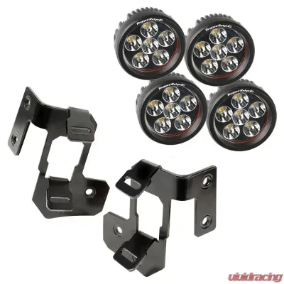 This semi-gloss black Dual A-pillar light mount kit includes a pair of light mounts and four 3.5-inch round LED lights. Fits 07-16 Jeep Wrangler JK.