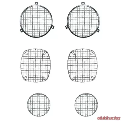 Protect and enhance the look of your Jeep with this six-piece stone guard set from Rugged Ridge that is made of a stainless steel wire mesh and protects your headlights, taillights and turn signal indicators. Match these kits up with the Rugged Ridge Grille inserts and headlight bezels and you have a complete front end enhancement.