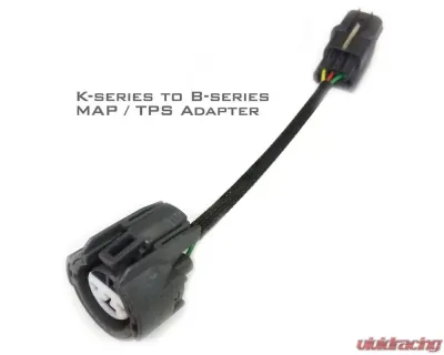 This adapter harness is about 5 inches long and adapts the factory K-Series wire harness to a throttle position (TPS) sensor for a B series sensor.