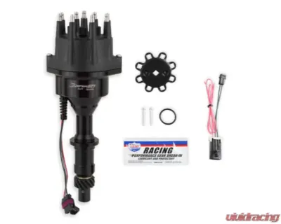 Plug And Play Billet Distributor w/Hall Effect Crank Trigger Sensor Housing; Black Billet Aluminum;Legal On Non-Emissions Controlled Vehicles Or For Race Use