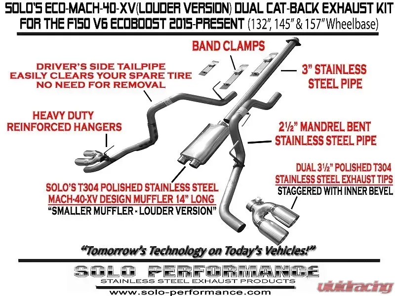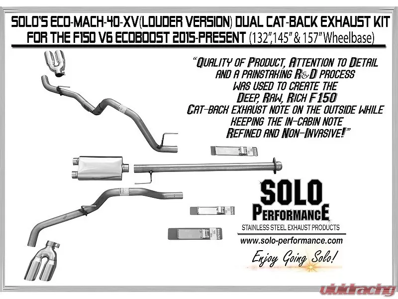 Solo Performance is an aftermarket company that specializes in manufacturing high-quality performance exhaust for the automotive industry. Their exhaust systems are made out of complete stainless steel units, including all the welds, o2 bungs, flanges, and hangers.