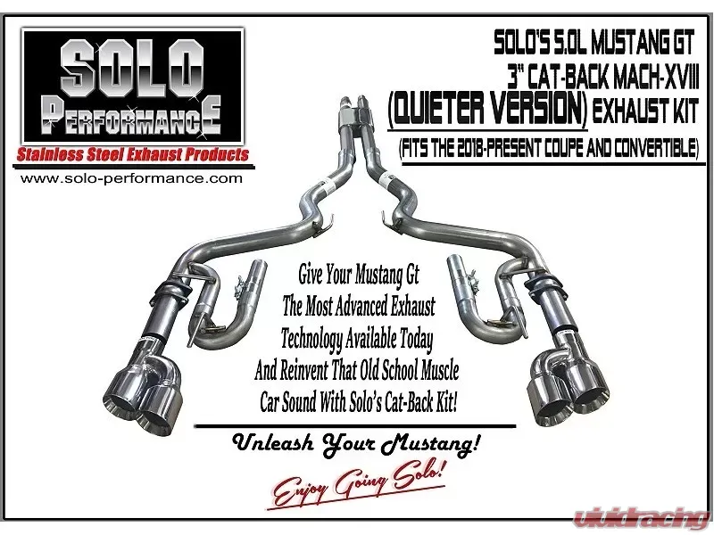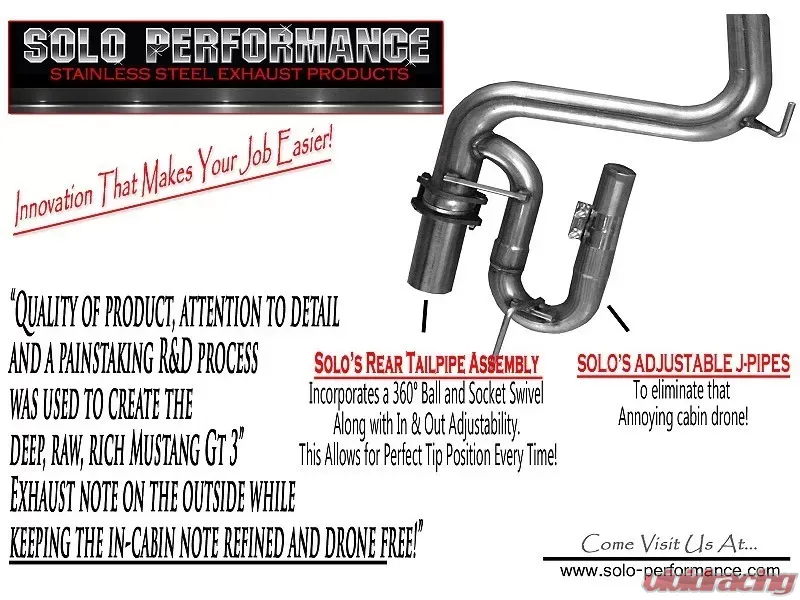 Solo Performance is an aftermarket company that specializes in manufacturing high-quality performance exhaust for the automotive industry. Their exhaust systems are made out of complete stainless steel units, including all the welds, o2 bungs, flanges, and hangers.