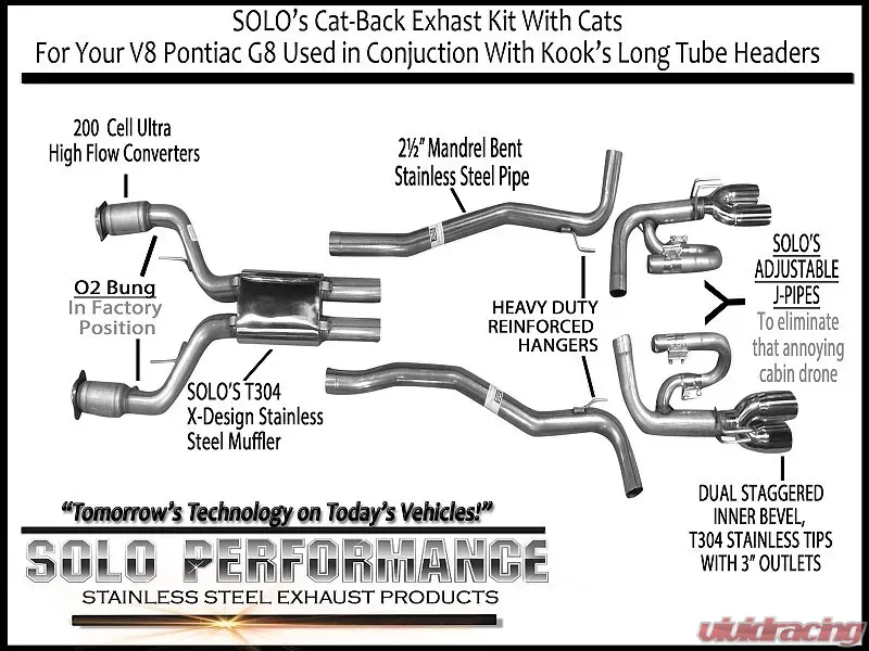 Solo Performance 2.5" Solo Mach Kit w/ Cats to Kook's (Standard Pipe) Pontiac G8 V8 2008-2009