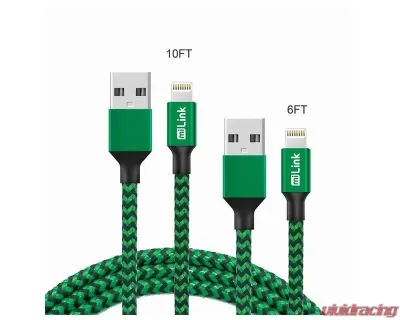 2-Pack 6'+10' iPhone Changing and syncing Cable (Green & Black)- 6FT x 2, tip to tip