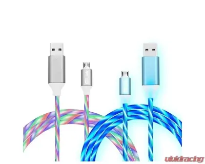 2-Pack 6’ Lighted Micro USB Charging Cable with Glowing Light Streamer - 6FT x 2, tip to tip