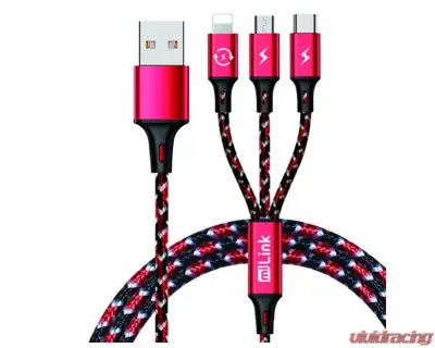 6ft. 3-in-1 (microUSB, Type-C, 8-pin) Charging Cable- Aluminum alloy housing with re-enforced ends