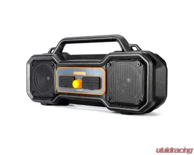 This compact boombox puts out up to 40 watts of dynamic audio. Its rugged construction and IP55 water resistance make it durable enough to be used at almost any job site, backyard, or pool. Enjoy up to 6 hours of use on a full charge. The powerful rear magnets allow for easy mounting on any metal surface, perfect for any workshop.